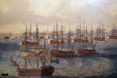 Admiral Nelson forcing the Passage of the Sound before the Battle of Copenhagen on 2nd April 1801 in the Napoleonic Wars: picture by Robert Dodd