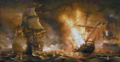 Morning after the Battle of the Nile on 1st August 1798 in the Napoleonic Wars: picture by Robert Dodd