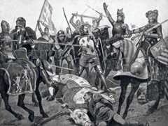 Sir John Chandos urges the Black Prince to attack saying ‘Sire the Day is yours’ at the Battle of Poitiers on 19th September 1356 in the Hundred Years: picture by Richard Caton Woodville