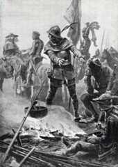 Cardinal Talleyrand leaves the English camp the night before the Battle of Poitiers on 19th September 1356 in the Hundred Years: picture by Richard Caton Woodville