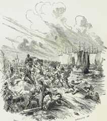 The war at sea began badly for the English, a French flotilla capturing the Christopher and the Edward, believed to be among the largest vessels afloat, after a fierce struggle in the English Channel. Later the same year a French flotilla raided Plymouth, burning the town and capturing the shipping in the harbour.