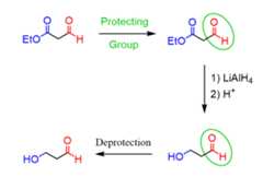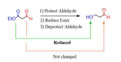So, theproblem, and the objective, hereis to temporarily protect the aldehyde,reduce the ester, and thenremove the protecting group to bring the aldehyde back in the normal form: