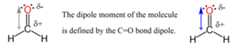 The C-H bonds are nonpolar and therefore, themolecular dipole is mostly defined by the magnitude and direction of theC=O bond. Oxygen, being more electronegative, pulls the electron density of the C=O bond, and thus defining the direction of the molecular dipole: