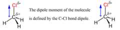 For example, if we replace one more hydrogen atom in dichloromethane (CH2Cl2 shown above), we need to find thevector sum of the two C-Cl dipoles to determine the overall dipole of the molecule: