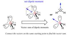 Now, if there aremultiple polar bonds, the molecular dipole moment is determined by thevector sumof those dipole moments.