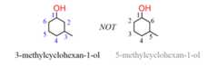 3) Thehydroxyl group has a higher priority than alkyl substituents or π bonds. Therefore, you need to number the parent chain such that theOH gets the lowest number possible: