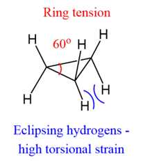 Before going into the details, here is one important thing to remember:three-membered ringsare not very stable, meaning they are quite reactivedue toring strain,which is a result of the angle strain and torsional interactions.