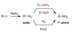 In a similar manner, azide ion can be used as a good nucleophile by reacting with an alkyl halide and later reduced to an amine: