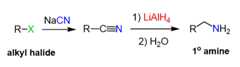 We have seen above that using a cyanide nucleophile allows for the preparation of an amine with an extra carbon atom in the chain.