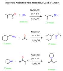 Reductive amination is used for preparing amines from aldehydes and ketones. All we need is to mix an amine with an aldehyde or ketone in the presence of sodium cyanoborohydride (NaBH3CN) at lowerpH levels: