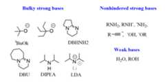There are bulky (sterically hindered) and small (sterically unhindered) bases. All of them are suitable for E2 reactions, but they are used selectively mainly to control the regiochemistry of the E2 reaction (Zaitsev’s and Hoffman products).