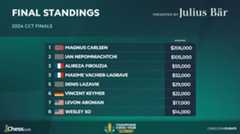 GMMagnus Carlsen defeated GMIan Nepomniachtchi 4-1 to win the2024 Champions Chess Tour Finals and his fifth consecutive Champions Chess Tour title. Again earning the $200,000 first prize, Carlsen has won every edition of the Champions Chess Tour since it began. It is his 11th tournament win this year.