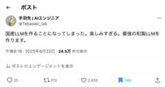 — 手羽先 | 国産LLMを作る人 (@Tebasaki_lab)August 24, 2025