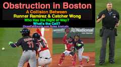 But as Wong turned toward home, he collided with batter-runner Ramírez. Initially ruled interference on Ramírez, chief Baker called his crew into consultation, ultimately ruling that, because Wong was not entitled to protection under the rules for fielding a batted ball, he therefore obstructed the batter-runner. Accordingly, the batter-runner was awarded first base and all runners advanced one base.