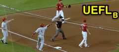 In 2011, Jerry Layne's crew convened to rule Obstruction A on an infield ground ball where the batter-runner ran into a non-fielding pitcher standing in his base path in front of first base. Though the plate umpire was Layne and first base umpire Alan Porter, it was 2B Umpire Hunter Wendelstedt who ended up explaining the call to a dissatisfied Mariners Manager in Eric Wedge. No obstruction appeared to have been initially called on the play—