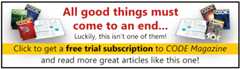 Get help from the experts atCODE Magazine - sign up for our free hour of consulting!