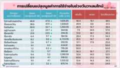 ส่วนพฤติกรรมการใช้จ่ายช่วงวาเลนไทน์ปีนี้เทียบกับปีก่อน ในด้านของปริมาณ คนส่วนใหญ่50.6% ใช้จ่ายไม่เปลี่ยนแปลง ,26.8% ใช้จ่ายเพิ่มขึ้นโดยมีอัตราสูงกว่า คนที่ตอบว่า ใช้จ่ายลดลงซึ่งมีสัดส่วนอยู่ที่ 22.6 % เหตุผลที่ใช้จ่ายเพิ่มขึ้นเพราะสินค้าแพง, เป็นช่วงวันหยุดยาว ,มีสถานที่จัดเลี้ยงมากขึ้น ส่วนคนที่ใช้จ่ายลดลง เป็นเพราะสินค้าแพง มีภาระหนี้สินเพิ่มขึ้น