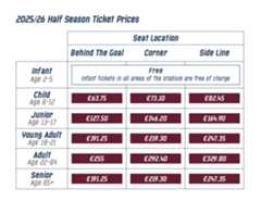 The grid below shows the price for the 2025/26 Half Season Ticket, and demonstrates a significant saving when compared to buying tickets on a match-by-match basis: