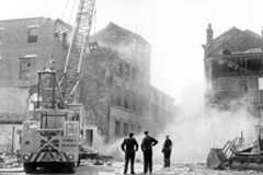 Demolition scene in London Road in 1970 making way for the Eagle Centre development.