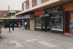 A view from outside the Eagle Centre, looking towards Wilkinsons in the Main Centre in the 1990s.