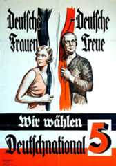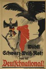 Da die Politik der Deutschnationalen einem Teil der Deutschvölkischen zu gemäßigt war, verließen viele von ihnen 1922 die DNVP und gründeten die nationalistisch-antisemitische Deutsch-Völkische Freiheitspartei. Doch auch nach Abspaltung dieser deutsch-völkischen Gruppe verfügten die Deutschnationalen über einen einflussreichen alldeutsch-völkischen Parteiflügel unter Alexander Freiherr von Freytag-Loringhoven (1878-1942), der sich u.a. die Bekämpfung der "Vorherrschaft des Judentums in Regierung und Öffentlichkeit sowie die Unterbindung der ostjüdischen Einwanderung" auf die Fahne geschrieben hatte. Einer bemerkenswert zurückhaltenden Unterstützung des von GeneralWalther von Lüttwitz im März 1920 initiiertenPutsches stand der laute Jubel gegenüber, mit dem zahllose deutschnationale Zeitungen auf die Ermordung vonMatthias Erzberger 1921 reagierten; etwas zurückhaltender war die Reaktion der deutschnationalen Presse auf dieErmordung von Walther Rathenau 1922. Bei der Wahl des Reichspräsidenten 1925 unterstützten die Deutschnationalen den greisen Paul von Hindenburg als rückwärts gewandten Hoffnungsträger.