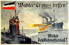 Auch über den Namen der Partei herrschte zunächst keine Einigung. So lehnte etwa der Deutschkonservative Kuno Graf von Westarp (1864-1945) als überzeugter Anhänger des preußischenDreiklassenwahlrechts den Begriff "Volkspartei" als Ausdruck eines "unehrlichen Buhlens um die Masse" ab. Nur auf massiven Druck des Deutschnationalen Handlungsgehilfen-Verbands wurde schließlich der Name Deutschnationale Volkspartei (DNVP) durchgesetzt. Zum Vorsitzenden ließ sich der ehemalige preußische Finanzminister und DNVP-Mitbegründer Oskar Hergt (1869-1967) wählen.Alfred von Tirpitz undWolfgang Kapp, die beiden Gründer der Vaterlandspartei, sowieAlfred Hugenberg, der "Pressezar", zählten zu den bekanntesten Mitgliedern der Partei. Die DNVP vertrat vor allem die politischen und wirtschaftlichen Interessen der Eliten des Kaiserreichs: des Adels, des Beamtentums, des Offizierskorps und des gehobenen Bürgertums. Starken Rückhalt fand die Partei in der protestantischen Kirche, bei den ostelbischen Agrariern, bei Vertretern von Industrie und Handel sowie bei den militanten Vaterländischen Verbänden und beimStahlhelmbund.