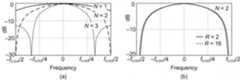 The comb section's differential delay design parameterN is typically 1 or 2 for high sample rate ratios as is often used in commercial radio frequency up/down-converters. VariableN effectively sets the number of nulls in the frequency response of a decimation filter, as shown in Figure 11(a).