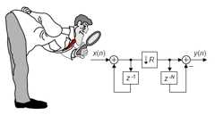 Those Figure 10 configurations yield two major benefits: first, the comb sections' new differential delay lines are decreased in length toN = D/R reducing data storage requirements; second, the comb section now operates at a reduced clock rate. Both of these effects reduce hardware power consumption.