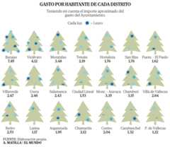 Los distritos de la periferia de la capital invierten tres veces más en iluminación de Navidad que los del centro