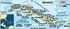 L’illa de Cuba, la superfície de la qual representa el 95% de la de l’estat, és constituïda per un sòcol antic de roques eruptives i metamòrfiques, recobert de materials sedimentaris del Secundari i Terciari, especialment calcaris del Juràssic i del Cretaci, juntament amb margues i material volcànic. Els moviments orogènics al llarg del Secundari i Terciari donaren lloc als tres eixos muntanyosos de l’illa, separats per extenses planes calcàries que ocupen la major part del territori. El primer eix que s’originà fou el massís d’Alturas de las Villas, en el Cretaci; la Sierra de Guaniguanico, dividida en les serralades d’Órganos i de Rosario, del material calcari, es formà a l’Eocè inferior, mentre les muntanyes esquistoses de Trinidad i de Sancti Spíritus, al centre del país, que constitueixen la Sierra del Escambray, es formaren per una falla de corriment durant l’Eocè superior; la serralada més important del país, Sierra Maestra, de materials volcànics, on hi ha el cim més alt de l’illa, Turquino (2.005 m alt.), es formà entre el Miocè i el Pliocè. Les planes són predominantment calcàries. Elscayos, o petites illes d’origen coral·lí, formen els arxipèlags de Los Canarreos i Jardines de la Reina, al sud, i els de Camagüey i Los Colorados, al nord. La major part de la costa és baixa, d’aiguamolls, entre els quals es destaquen, per més de 4.000 km2, els de Zapata. Hi ha sectors on s’han format terrasses d’abrasió fòssil marina, la més important de les quals és la del cap Maisí, a 480 m d’altitud sobre el nivell del mar.