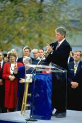 Format a les universitats de Georgetown, Oxford i Yale, en 1974-76 fou professor de dret a Arkansas. Afiliat al partit demòcrata, fou governador general d’aquest estat en 1979-81 i en 1983-91. El 1992 derrotà George H. Bush en les eleccions presidencials. El seu mandat estigué marcat per la presumpta implicació en un escàndol de corrupció durant la seva època de governador. En política interior, l’enorme dèficit públic i la majoria republicana al Congrés sorgida de les eleccions legislatives del 1994 l’obligaren a reduir dràsticament el seu programa inicial de millora de les prestacions socials, especialment en la sanitat. Malgrat les concessions, la tensió entre Clinton i el Congrés fou constant, amb l’aplicació del veto presidencial al projecte de pressupostos per al 1996 (1995).