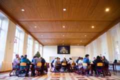 De refter: een plaats waar we elkaar vaak treffen om samen te eten. Maar wordt soms ook omgebouwd voor een mooie receptie.