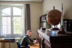 Kamer zonder sanitair (ingericht door student) (die wereldbol!)