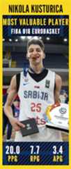 Nikola Kusturica, 16-year old Serbian shooting guard picked up the Most Valuable Player at the FIBA Under 16 EuroBasket. He plays For the FC Barcelona Lassa 2nd team in Spain. Kusturica received multiple other awards, was named the Best Guard and was voted to the First Team. He conducted his way to the fourth position in averaging a commendable 20 points per game. Kusturica also averaged almost 8....