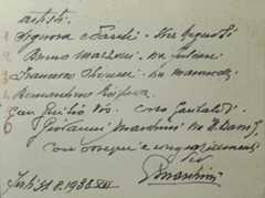 Ancora Ettore Casadei non manca di ricordare che il Cenacolo Artistico Forlivese annoverava un buon numero di soci onorari, fra cui:il Primo Ministro d’Italia Benito Mussolini, il fratello Comm. Arnaldo, direttore de “Il Popolo D’Italia”, il Senatore Corrado Ricci, il Senatore Giuseppe Bellini, l’Illustre pittore Adolfo De Carolis e tante altre personalità artistiche e letterarie. Giacomo Balla, grande esponente del Futurismo, donò al Cenacolo una sua opera:Ritratto –siamo in quattro – beato chi li trova. L’olio su tela fu poi ceduto gratuitamente da Marchini alla Pinacoteca pubblica di Forlì dove ancora è possibile ammirarlo.