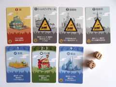 例えば「鉱山」は「9」の目を出すと、5コインをもらえます。
