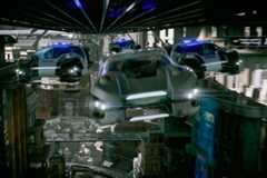 There were thousands more flying cars in “Gridlock”, and they all looked like armoured VW camper vans. They also all looked identical which may be: a) a clever in-joke referencing Henry Ford’s gag about “ Any customer can have a car painted any colour that he wants so long as it is black”, or b) a way of making things a bit easier for the CG FX team and set dressers working on a TV budget.