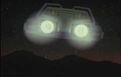 For a proper flying car in Doctor Who , you have to go all the way back to Jon Pertwee’s final story. Oddly, whenever it took off, it developed a yellow halo. Contrary to popular belief, this was not dodgy ’70s electronic effects work, but an alien anti-gravity energy field. Honest, guv. The car was actually based on a invalid tricycle, and was specially commissioned for, and owned by, Jon Pertwee.