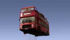 Thanks to some alien anti-gravity devices stuck to its wheels, a London double decker levitates out of the sand dunes (or more accurately, human remains dunes) of “The Planet Of The Dead”. But it wasn’t Doctor Who ’s first flying bus…