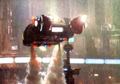 The flying cars in Blade Runner were christened spinners, though they neither span very much nor sounded a ’60s folk band (or, indeed, a ’6os soul band, if you’re American). They could be driven like cars on the ground, or perform a vertical take-off and fly away. They were designed by Syd Mead, who described them as aerodyne – which means a vehicle that directs air downwards to create lift – though publicity for the film stated that the spinner was propelled by three engines: “conventional internal combustion, jet and anti-gravity”. Maybe there were different models?