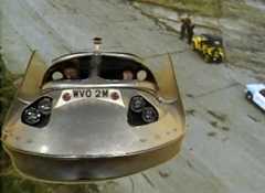 Gerry Anderson has flung a fair few flying cars our way over the years. He started off with his first SF series, Supercar , the star of which could also be driven underwater (but it didn’t actually look at all like a car). FAB 1, Lady Penelope’s pink Rolls Royce, never actually flew in the TV series of Thunderbirds , but it did take off in the big screen version, Thunderbirds Are Go , although that was only in a dream sequence (in which Lady Penelope flies Alan to a nightclub called The Swinging Star where Cliff Richard Jr is performing). In the ghastly 2004 film version, FAB 1 did fly, but by that time it was a rather ugly, heavily-modified Ford Thunderbird, and fans are never going to accept that as canon. Anderson also gave us flying police cars in Space Precinct , but they were pretty ungainly-looking, and had nothing on the police spinners in Blade Runner .