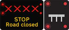 Red flashing light signals and a red ‘X’ on a sign identify a closed lane in which people, stopped vehicles or other hazards are present. You