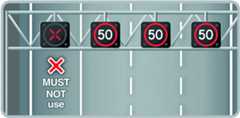 Lane specific signs and signals can display advice, restrictions and warnings that apply to individual lanes.