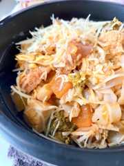 この時はベーコンの端っこと玉ねぎを炒めて入れました。