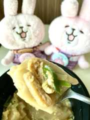 食感は、ワンタンの皮に近い感じもあるのですが、ワンタンの皮は時間が経つと細かくとけてしまいます。