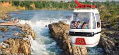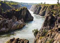 Raw beauty: After passing through the smoky cascades at Dhuandhar, the Narmada flows westwards past jagged marble cliffs toward Panchavati.