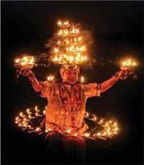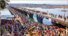 The birthday festival (jayanti) of the narmada, which started on a modest scale in the late 1970s at Narmadapur, Hoshangabad, has grown into a Mega-Fest today. Donation of Lamps (Deepdaan) and Narmada Abhishek (anointing of the River Narmada) with milk and flowers are two of the spectacles that illuminate the night-long festivities. Eight km east of Hoshangabad is the confluence of the burgundy-colored waters of the Tava River with the blue-hued Narmada. The exquisite Narmada temple at Bandarabhan at the confluence is noted for its rousing Narmada Jayanti festivities. Devotees offer milk and flowers to the river at Gwarighat as auspicious red-hued saris and stoles are strung across the banks to mark the emergence of this holiest of holy rivers upon the Earth.