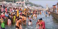 Energy—spiritual and electrical:Devotees gamboling in the sacred waters at the Abhay Ghat, which is designed for safety with a water-breaker wall.
