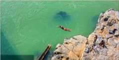 Sport and spirit: A local fisherman dives courageously into the emerald river waters at Barman Ghat