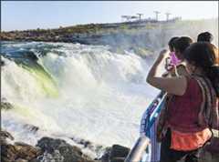 My own tryst with the narmada occurredat Bhedaghat at high noon. It was at a place 19km from Jabalpur, where the river falls over marble rocks in a spectacular waterfall called Dhuandhar. The roar of these smoky cascades is heard long before one actually sees them. That explains why the Narmada is also called Rewa, or the River that Roars. The Narmada reverberated with the noise of millions of water birds in earlier times. Adi Shankaracharya evokes that ecological glory in his Sanskrit hymn Narmada Ashtakam. The reformist-philosopher, who lived in the 8th century ce, describes the river’s “resolute shores” as “resounding with the cacophony of lakhs of birds (Nira-tira-dhira-pakshi-laksha-kujitam).” The master composed the hymn on the banks of the Narmada at Omkareshwar, the Om-shaped island renowned for its Linga of Light shrine. Today there are hardly any birds, but plenty of people milling around on the concrete promenade facing the roaring waters.